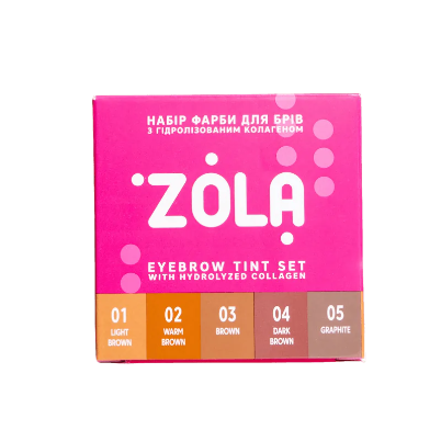 Постоянната боя ZOLA осигурява висококачествено и безопасно боядисване на веждите, а благодарение на полезните съставки се грижи за тях. Колагенът укрепва косъмчетата, придава им еластичност и блясък. Ланолинът и овлажняващият сорбитол проникват дълбоко в структурата на косъма и го хидратират интензивно. Уникалната формула и ламеларната текстура позволяват създаване на висококачествен отпечатък с „ефект на къна върху кожата“. Боята има мека консистенция, лесно се смесва и нанася върху веждите.