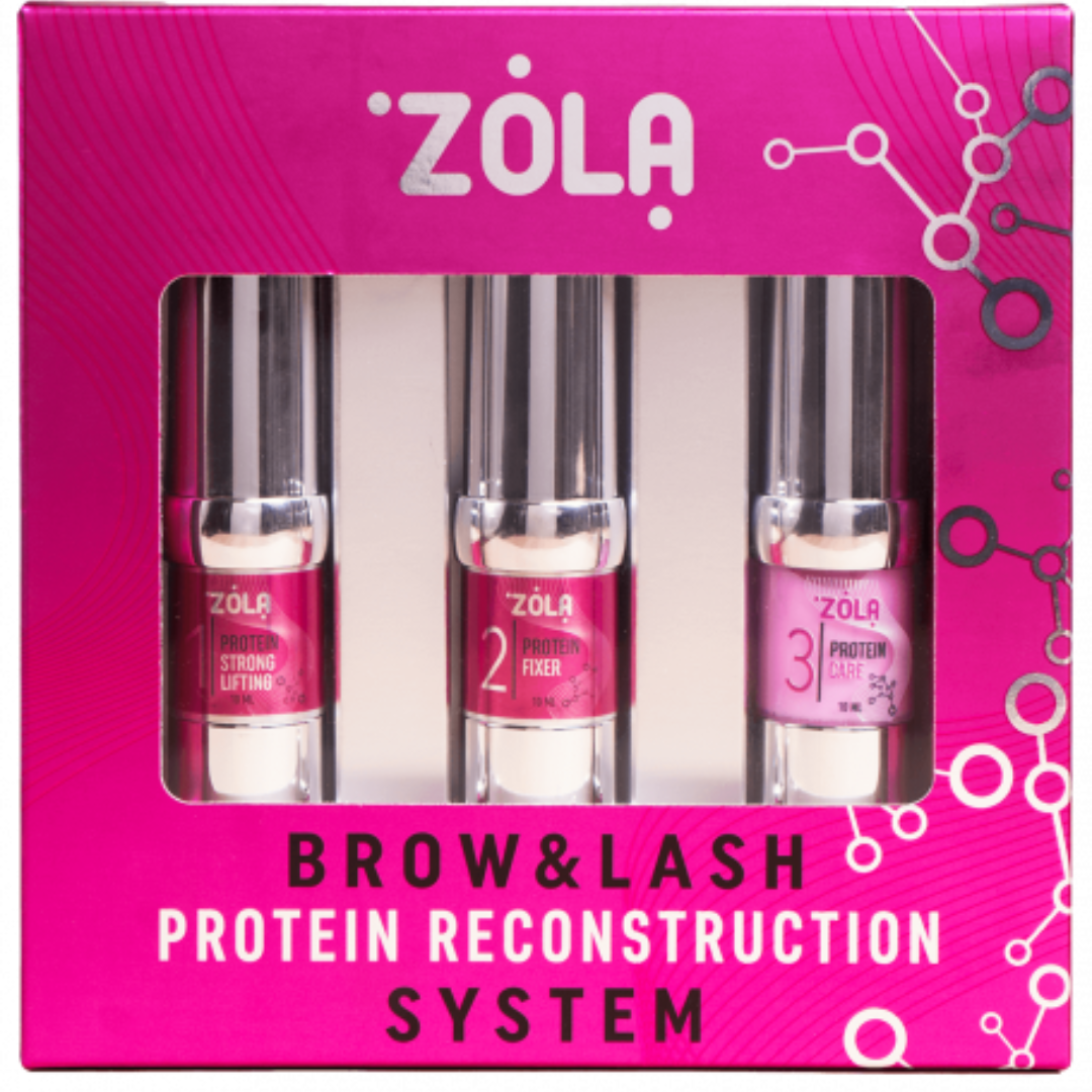 ПРОТЕИНОВАТА РЕКОНСТРУКЦИЯ е иновативна система от ZOLA, създадена чрез внедряване на научни разработки и модерни формули. Тя е 100% универсална и подходяща за всички типове косъм – от много твърди до нормални и отслабени мигли и вежди. Благодарение на регулируемото време на експозиция, системата позволява постигане на перфектен резултат според индивидуалните нужди на клиента.